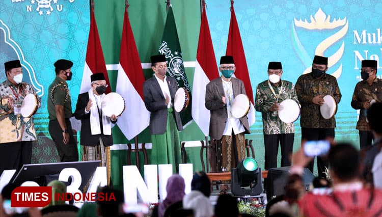 TIMES Bangkalan/Presiden Jokowi (Joko Widodo) membuka secara resmi Muktamar Ke-34 Nahdlatul Ulama di Pondok Pesantren Darussa’adah, Gunung Sugih, Lampung Tengah, Rabu (22/12/2021). (FOTO: Moh Ramli/TIMES Indonesia)